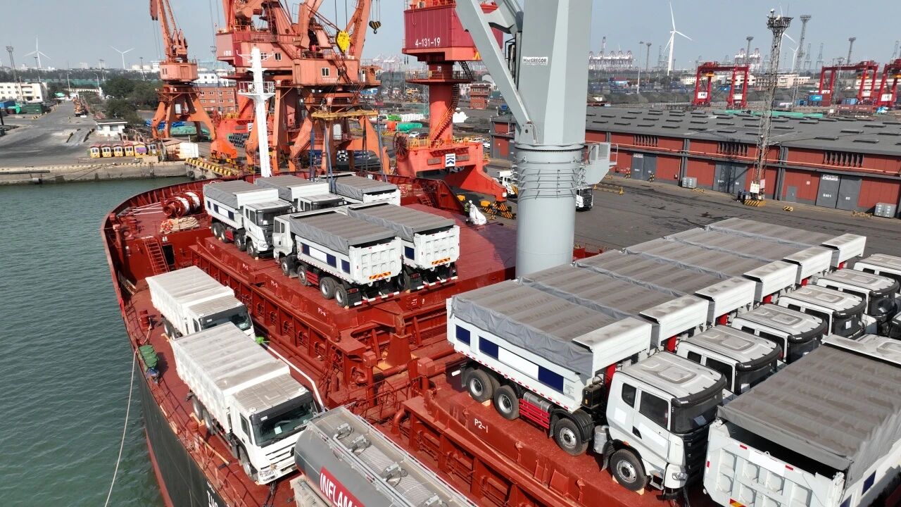 國慶首日,晨光熹微。天津港第四港埠有限公司碼頭現場一派繁忙景象——120輛由三一重工制造的自卸車順利完成裝船作業,搭乘“比利牛斯”輪奔赴“一帶一路”國家。這場跨越重洋的車輛運輸,既是中國智造與中國港口攜手為祖國華誕獻上的節日厚禮,更是天津港深度服務“一帶一路”、推動與中美洲國家深化務實合作的生動實踐。